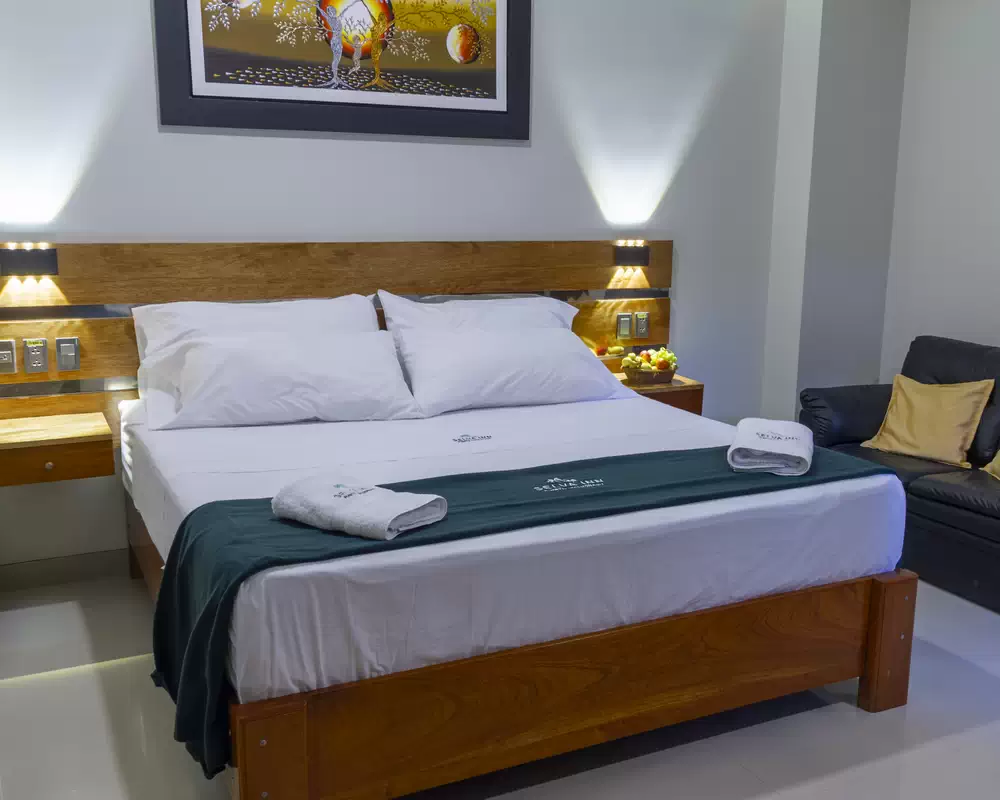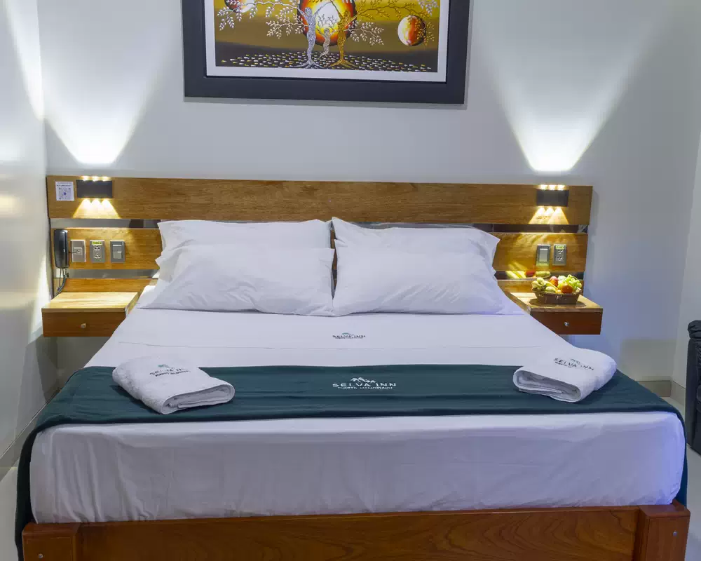 HOTEL SELVA INN PUERTO MALDONADO ROOM MATRIMONIAL KING Size: 18 m2 Beds: 01 (3 Places) Capacity: 02 People Book by WhatsApp Price by nightS/ 200 INQUIRIES AND BOOKINGS Hab-MatKing Full name * E-Mail * Arrival date * Questions or Comments Send Information If you are human, leave this field blank. ROOM SERVICE Tv Led with cable Wi-Fi Room cleanup Shower Telephone Wake-up service Mini bar Toiletries Air-conditioning Table with lamp Private bathroom Voltage 220v Smoke detector Towels Fan Wardrobe with coat racks Hot and cold water OTHER ROOMS Single Room Matrimonial Queen Matrimonial King Double Triple Matrimonial Suite Confirm your reservation by paying by credit or debit card Pay here